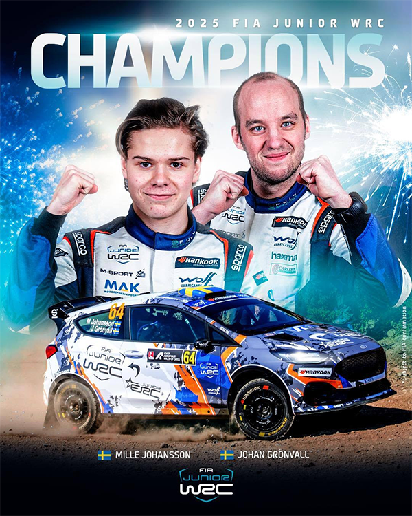 20-årige rallyföraren Mille Johansson från Katrineholm och kartläsaren Johan Grönvall från Arvika är Juniorvärldsmästare i rally 2025. Svenskduon säkrade VM-guldet efter en dramatisk avslutning på Central European Rally, där de vann tävlingen med 1,6 sekunders marginal - och därmed också hela mästerskapet.